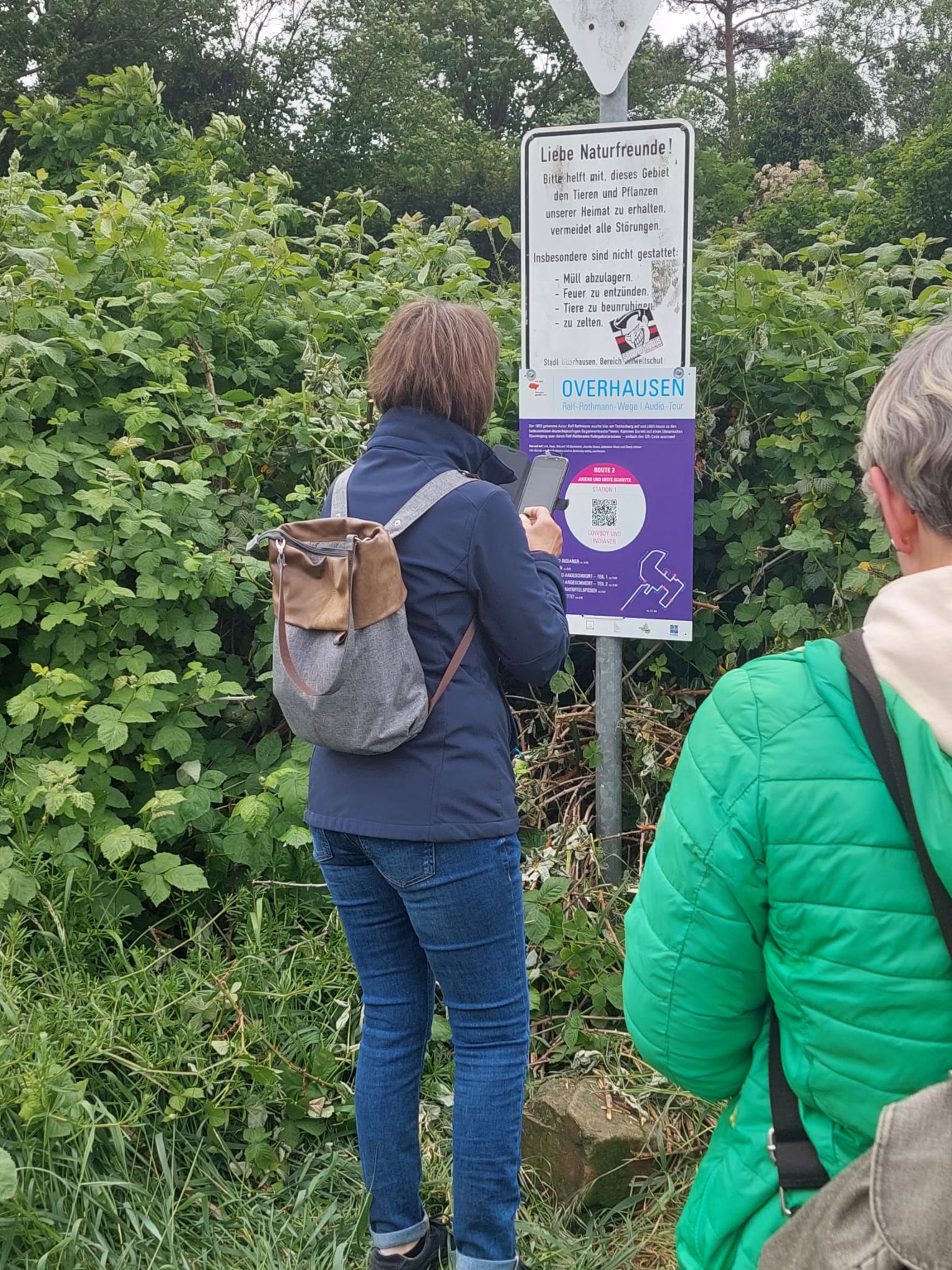 Und schon kann es losgehen. Sie können drei unterschiedliche Routen erwandern. An den einzelnen Stationen der Routen finden Sie Schilder mit QR-Codes – einfach den jeweiligen QR-Code einscannen, den Audioplayer starten und schon hören Sie Ausschnitte aus Rothmanns Romanen. Die Stimmen der Spielkinder leiten Sie von Station zu Station.